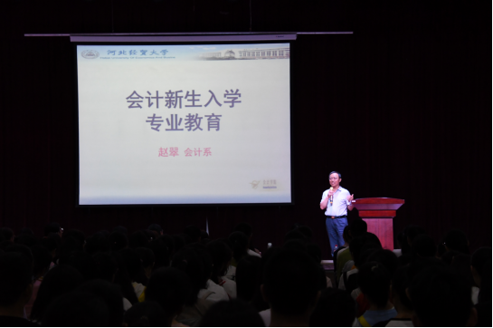 8月26日下午,bg大游官方网站在老员工活动中心三号厅开展新生入学专业教育。公司党委书记张霖、经理袁振兴、党委副书记程丽梅、教学副经理杨国莉、财务管理系主任和丽芬、审计系主任王砚书、会计系主任赵翠出席了本次活动。教务秘书蒋琳、新生辅导员姜丙毅、孙轲,以及2019级全体新生参加。本次活动由程丽梅主持。