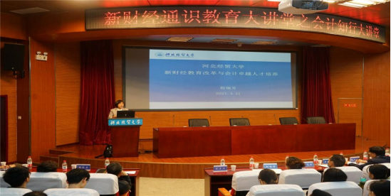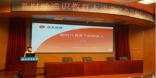 4月21日下午,新财经通识教育大讲堂---会计知行大讲堂在国际学术报告厅举行,公司党委常委、副董事长程瑞芳和河北资产管理公司总会计师马莹分别做了题为“新财经教育改革与会计卓越人才培养”和“新时代背景下的财务人”的主题报告。bg大游图书馆馆长武占江、副馆长樊俊荣、“会计知行大讲堂”部分实务界讲师和bg大游官方网站220余名师生参加了本次宣讲会。宣讲会由bg大游官方网站经理袁振兴主持。
