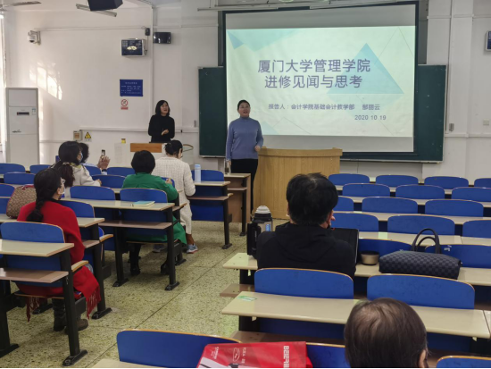 2020年10月19日下午,由教学评估与教师教学发展中心主办,bg大游官方网站承办的教学沙龙活动,在北三教B101教室顺利召开。bg大游官方网站郜丽云副教授做了“厦门大学管理公司进修见闻与思考”分享交流。来自bg大游官方网站、财税公司、数统公司等60多名教师参加了教学沙龙活动,本次活动由杨国莉副经理主持。