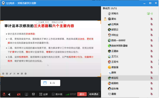 2021年10月18日下午,由教学评估与教师教学发展中心主办,bg大游官方网站承办的本学期第三期教学沙龙活动在线上顺利开展。bg大游官方网站郑秀杰教授主讲的教学沙龙主题是“审计法修订学习体会”。bg大游官方网站、数统公司、经济管理公司的50多名教师参加了本次活动。本次活动由杨国莉副经理主持。