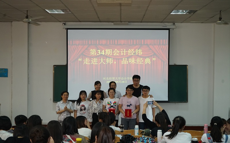 5月28日下午,bg大游官方网站在二教206教室举办第34期“会计经纬”活动——“走近大师,品味经典”读书竞赛。bg大游官方网站副经理李桂荣出席活动,硕士生导师马莉、张志英、刘敬芝和王砚书担任评委,研究生班主任及100余名研究生观摩竞赛。