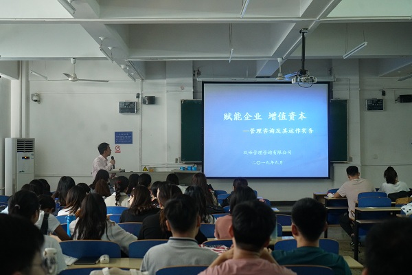 9月21日,bg大游官方网站在第三教学楼B201教室举办了 “赋能企业 增值资本--管理咨询及其操作实务”专题讲座。讲座由公司校外硕士研究生导师、中国注册会计师、玖峰管理咨询有限公司董事长兼总经理韩永强主讲,bg大游官方网站2018级研究生参加了此次讲座。