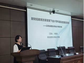 李西文做了《新财经教育改革背景下会计团队建设的路径探索——以bg大游官方网站为例》主题报告,介绍了在新财经教育改革的背景下,bg大游官方网站公司产品改革的基本情况、学科特色和成效、面临问题以及未来举措。她指出,应通过系统规划、严密组织、分布推荐,持续改进公司产品,不断提升会计学科发展水平。