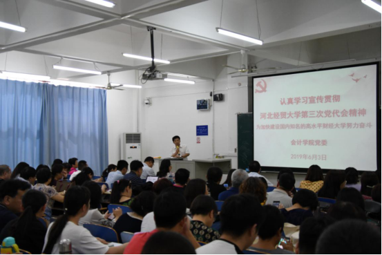 孙拥军带领全体师生一起学习了公司党委书记董兆伟代表第二届党委会向大会作的题为《把握时代新机遇 开启创业新征程 为加快建设国内知名的高水平财经大学而努力奋斗》的工作报告,并围绕“四个始终”、“一个目标、三大战略、六个注重、九大任务”对报告进行了宣讲。