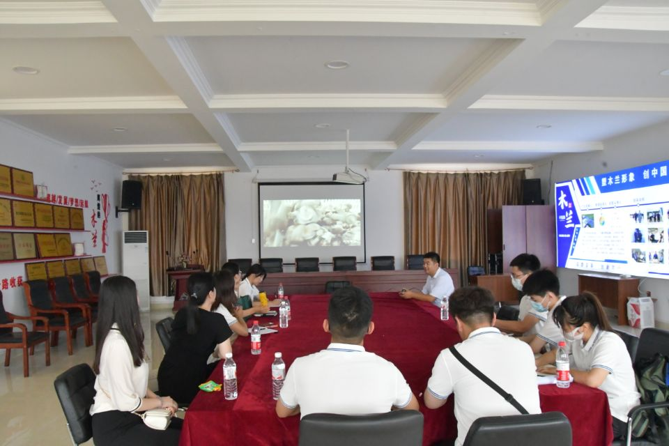 参观结束后,王亚吉与实践调研团进行了座谈。在座谈中,王亚吉向实践调研团一行讲解企业文化的核心内涵——木兰精神。木兰精神体现的是“高贵、坚韧、质朴、包容”的精神品质,这种精神品质更是企业董事长吴志芳的真实写照,她不忘初心深耕在食用菌栽培一线,荣获“全国农业劳动模范”。木兰菌业号召“民以食为天,食以安为源”,十分注重食品安全问题,致力于生产出让百姓吃的放心的产品。在产业扶贫方面,木兰菌业在助力扶贫和实施乡村振兴战略发挥了巨大作用。木兰菌业通过采用“公司+园区+基地+贫困户”的模式,通过入股分红、土地流转、菌棚租赁等模式,与周边9个乡镇的100多个村结成致富共同体,帮助青龙县6500多人实现脱贫。同时,在政府“三级书记抓电商”战略的帮扶下,完善了电商销售渠道,立足资源优势,大力促进了电商的发展,把电子商务和企业发展紧密联合起来,近几年持续扩展线下对外销售渠道,致力于将青龙特色品牌推广至全国,乃至全世界。