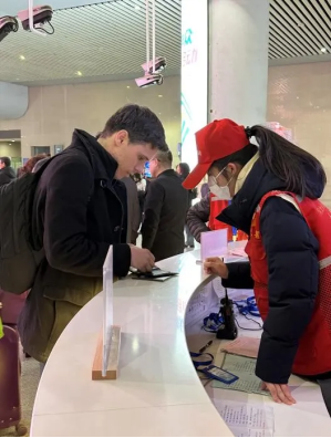 3月11日、13日,同学们到石家庄火车站组织开展志愿服务活动。服务内容有:为旅客提供必要的信息咨询,引导旅客有序排队,通过协助搀扶、提供轮椅、引导乘车,让旅客们顺利进出站。