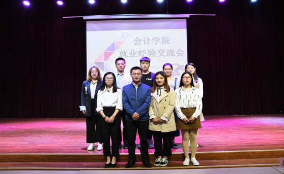本次就业经验交流会分为“经验分享”和“观众提问”两个环节。活动前期已通过微信平台问卷形式收集到了同学们关于就业的困惑与疑问。会议开始后,8位同学分别讲述自己的职业选择、备考方法和求职经验心得。张惠和李如钰分别分享了她们报考和参加中国农业发展银行和工商银行面试的经验和技巧;刘文智和田宇欣分享了他们报考国家电网以及国家税务局的收获;陈嘉宾向同学们介绍了他报考中国水电基础局的心得和体会;曹凌旭介绍了她选择内地八大会计师事务所之一的大华会计师事务所的经历和感悟;罗双双分享了她即将就职于大唐国际发电股份有限公司的经验;拟就职于万达集团的周新月分享了她进行大型企业面试的心得和体会。在随后的提问环节中,在座同学们就会计行业的发展前景、大类招生条件下针对银行工作的专业选择等方面进行了提问,学长学姐们耐心作答,会场气氛热烈。最后,姜丙毅作总结发言,他对今天分享经验的8位同学给予了充分肯定和高度评价,并对同学们未来的职业发展规划进行了梳理,鼓励同学们积极进取,早日实现自己的人生目标。