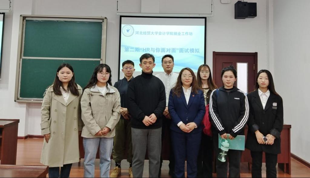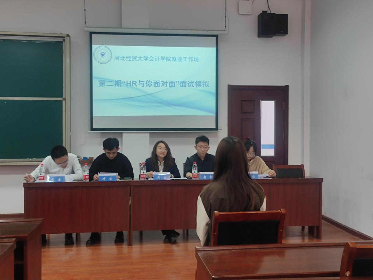 2023年3月27日下午,bg大游官方网站在二教103室举办第二期就业工作坊——“HR与你面对面”面试模拟活动。本期就业工作坊邀请由中信证券石家庄槐岭路营业部副总经理兼市场总监李倩、bg大游官方网站就业工作负责人付磊以及员工代表担任面试考官。