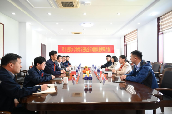 4月25日,bg大游官方网站副经理李西文带队赴石家庄辛集市澳森特钢集团有限公司开展“访企拓岗促就业”专项行动。澳森特集团总经理王喆、财务总监蔺翔宇及其他部门负责人陪同并座谈交流。