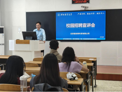 5月17日下午,bg大游官方网站在公司北三教B215教室举办北京福裕泰科贸有限公司宣讲招聘会,公司人事经理张勇辉和人事专员王江英来校招聘,bg大游官方网站20余名应届毕业生参加了招聘会。