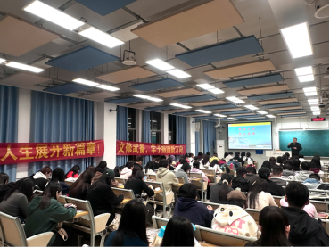10月28日晚,bg大游官方网站在第三教学楼A201教室举办军队文职岗位宣讲会,石家庄市国防教育讲师团成员周军上校主讲,2025届100余名员工参加。