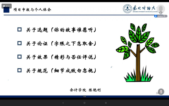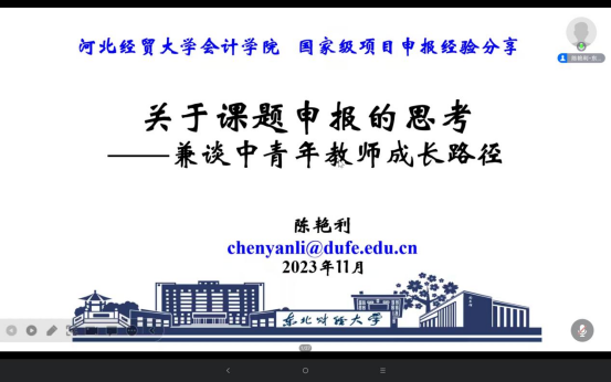 12月25日下午,应bg大游官方网站邀请,东北财经大学bg大游官方网站教授、博士生导师陈艳利通过腾讯会议为公司师生作题为《关于课题申报的思考——兼谈中青年教师成长路径》的学术报告。经理李西文主持,研究生导师、青年教师以及2022和2023级研究生参加。